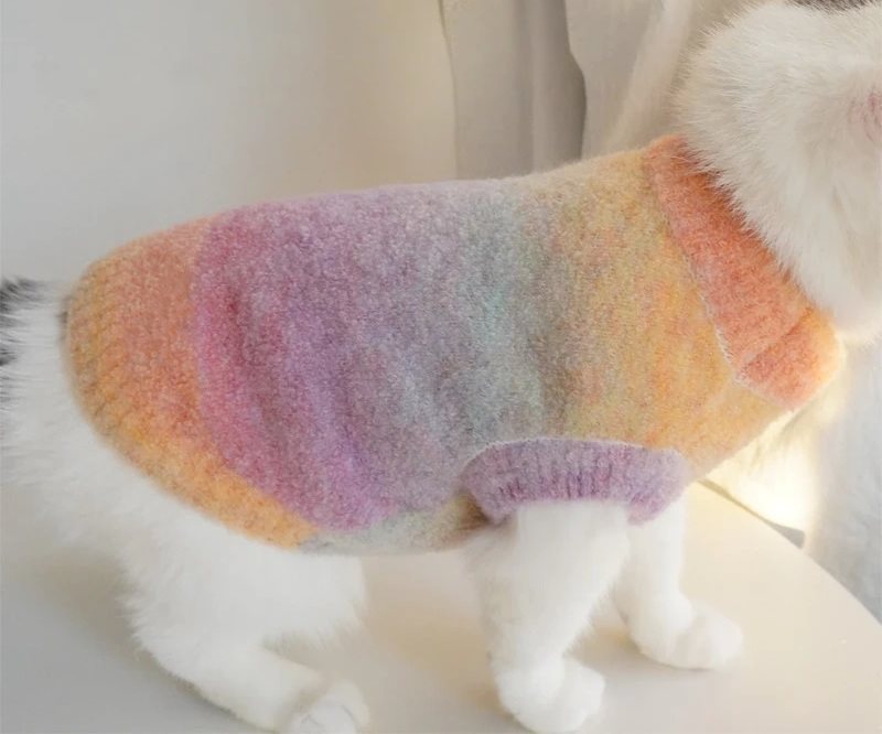 Stickad katttröja Rainbow – elegant och färgstark värme för kalla dagar