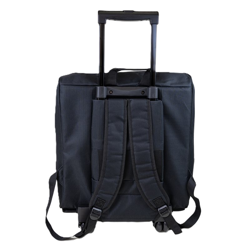 En flexibel transportväska som kombinerar funktion och bekvämlighet. Väskan kan användas både som ryggsäck med justerbara axelremmar eller som praktisk rullväska. Den är försedd med en öppning på framsidan samt två framfickor för extra förvaring.