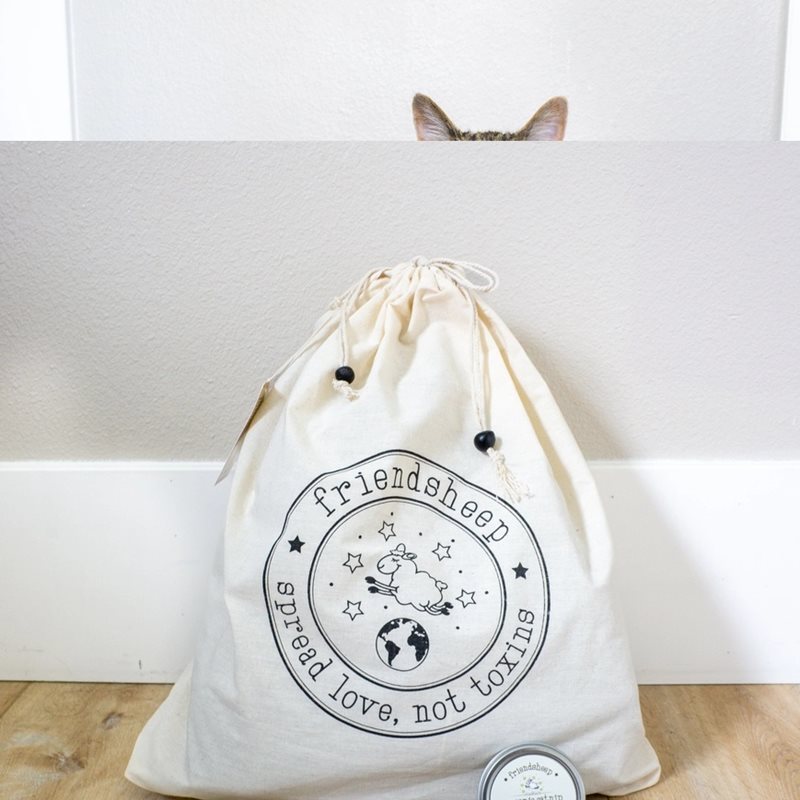 Din Eco Kitty Cave kommer i en vacker Friendsheep-väska med dragsko i ekologisk bomull, handgjord och handtryckt i Nepal, tillsammans med en bonusburk USDA ekologisk kattmynta. Det perfekta presentfärdiga zenpaketet till din lurviga vän!