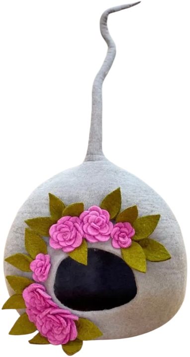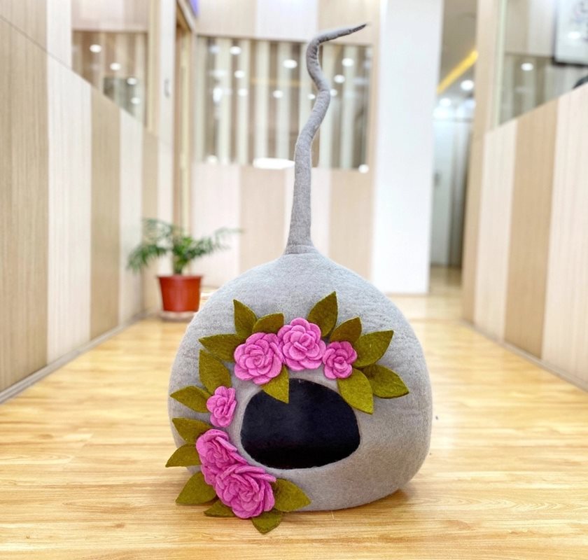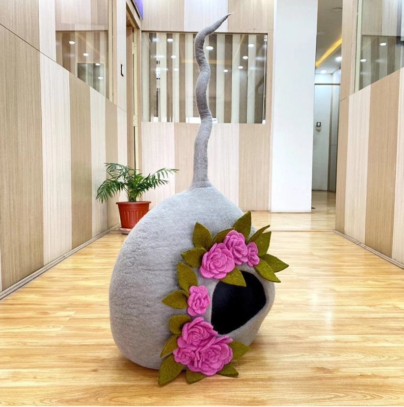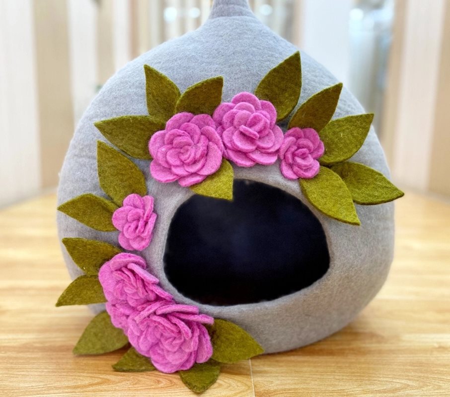 Eco Floral Katthåla i filt – naturlig komfort och handgjord elegans