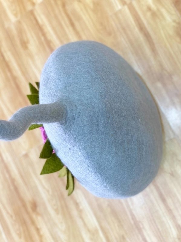 Vid öppningen pryds katthålan av handgjorda filtade blommor som ger en unik och lekfull karaktär. Varje detalj är skapad med omsorg, vilket gör varje katthåla till ett litet hantverk i sig. Den naturliga ullen ger en varm, lugnande miljö där katten kan kura ihop sig och vila i timmar.